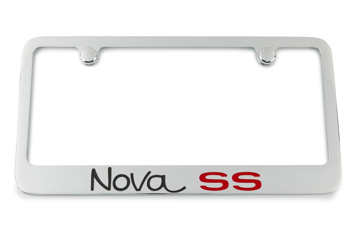 Chevrolet Nova SS License Plate Frames are equipped with secure tabs and matching screw covers. Our frames go beyond aesthetics, say goodbye to vibrations and harmonics as our frames ensure a stable and rattle-free fit, making them not just visually appealing but also practical.