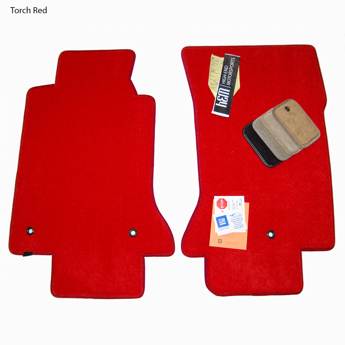 High-End Quality Custom Exact Fit Embroidered Floor Mats for your Corvette. Go ahead, proudly install a set of custom fitted mats manufactured by Lloyd Mats™. Ultimat™ features a Premium 32oz 2ply, extra dense nylon carpet and a Stylish Vinyl or Velour Binding that won’t unravel for the look, feel, and outstanding performance that an Corvette deserves. Custom fit and over Twice the Weight of most Corvette factory mats. All mats include factory compatible anchors and a non-slip SBR rubber backing to provide anti-skid characteristics.