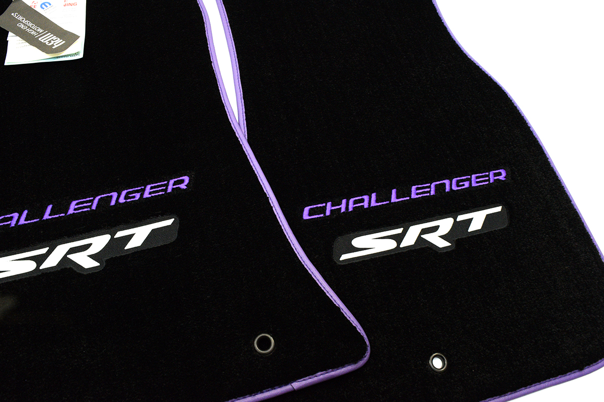 Custom fit and tailored to your exact year, make and model utilizing factory compatible anchors. Ultimat™ mats feature Premium 32oz 2ply, extra dense nylon carpet over twice the weight of most factory mats. Stylish Vinyl or Velour Binding that won’t unravel to give you the look, feel, and outstanding performance that your Dodge Challenger deserves. The logos are stitched with your choice of color in Red, Black, Beige, Light Blue,Blue, Dark Blue, Charcoal, Copper-Sinamon, Burgundy-Octane Red, Gold, Green, Bright Green, SubLime Green, Pink, Purple, Orange, Silver, and Yellow to name a few. With highly detailed MOPAR Licensed logos, embroidered through the mat and custom color trim options around the mat allows you to personalize the look you want for your Dodge Challenger