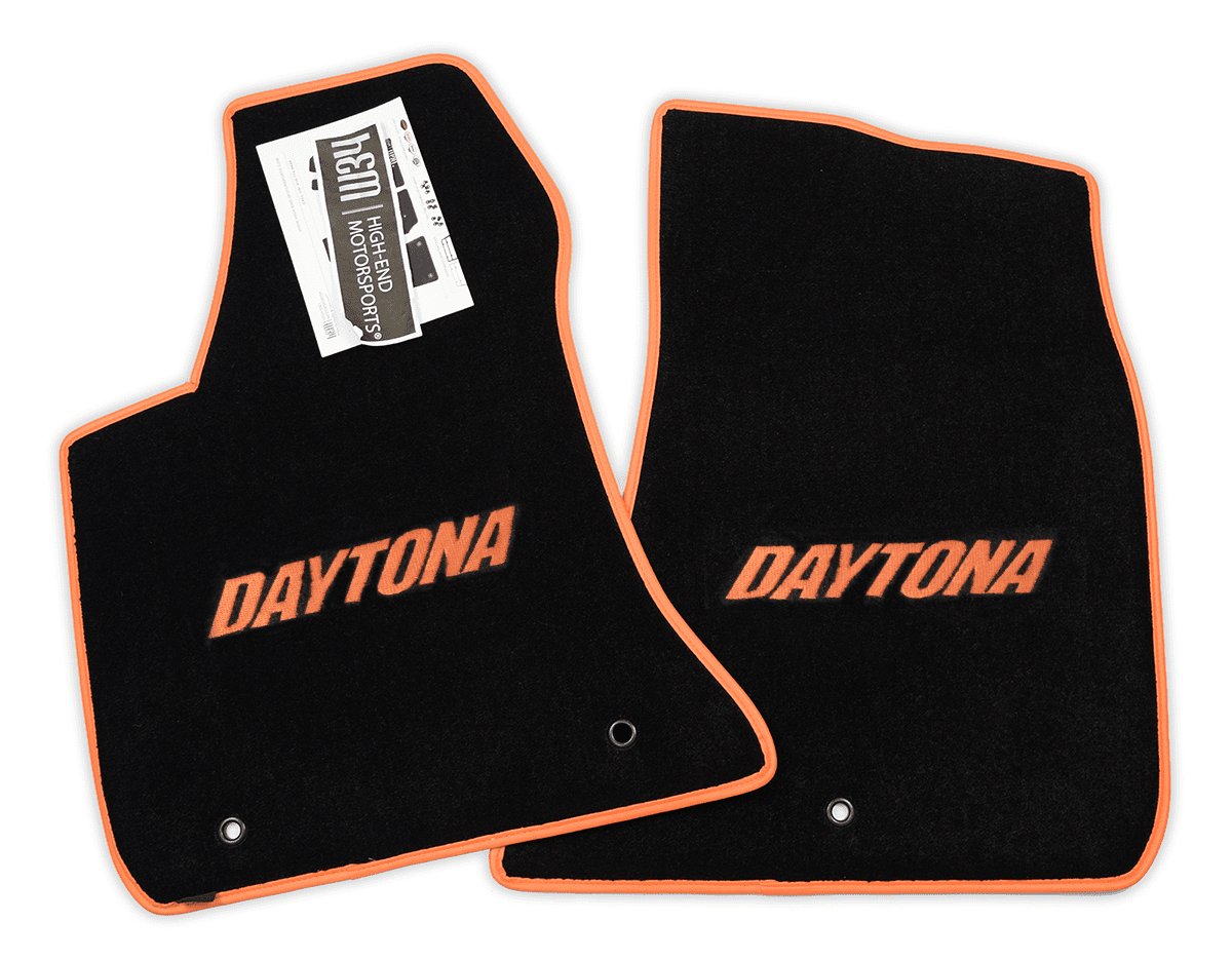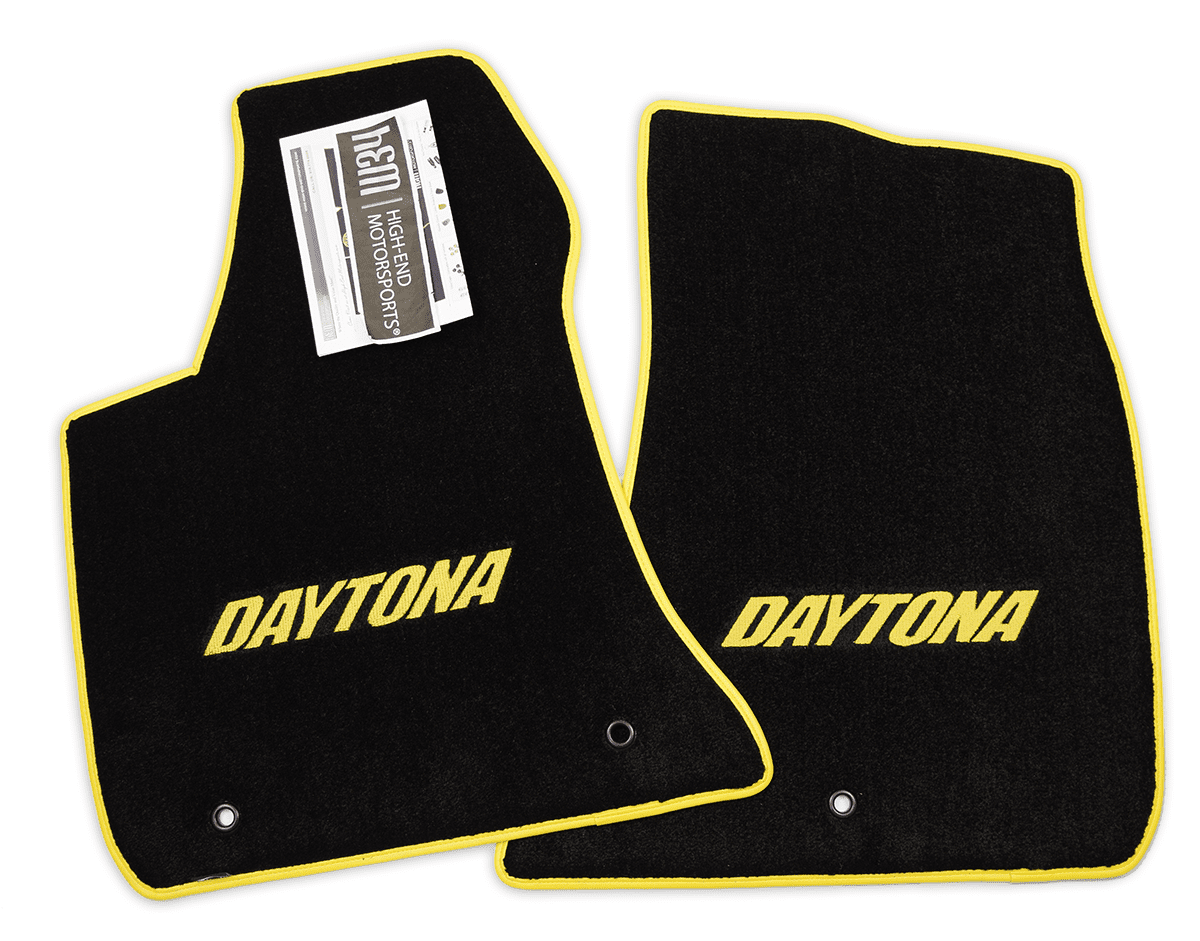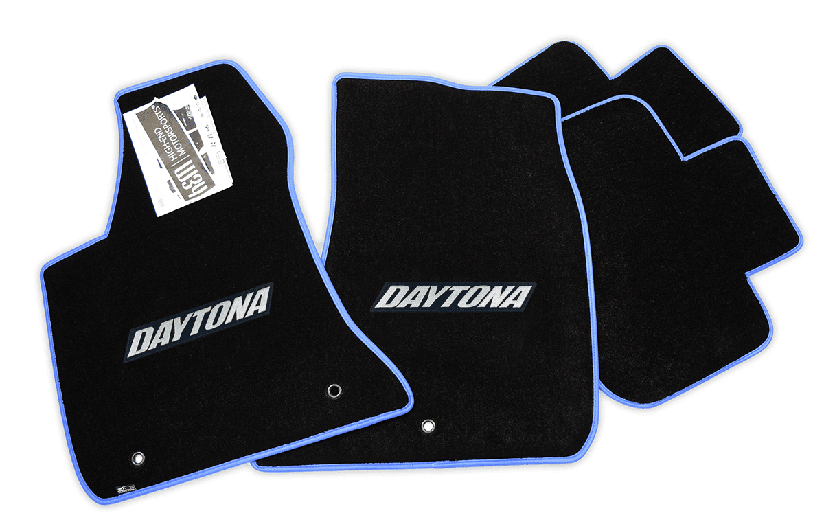 Custom fit and tailored to your exact year. Ultimat™ mats feature Premium 32oz 2ply, extra dense nylon carpet over twice the weight of most factory mats. Stylish Vinyl or Velour Binding that won't unravel to give you the look, feel, and outstanding performance that a Modern or Classic Charger Daytona deserves. The logos are stitched with your choice of color in Red, Black, Beige, Light Blue,Blue, Dark Blue, Charcoal, Copper-Sinamon, Burgundy-Octane Red, Gold, Green, Bright Green, SubLime Green, Pink, Purple, Orange, Silver, and Yellow to name a few. With highly detailed Mopar Licensed logos Embroidered through the Mat and custom color trim options around the mat allows you to personalize the look you want for your Charger Daytona.