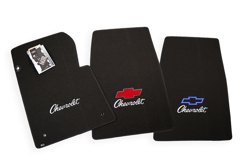 Choose between premium Ultimat™ 32oz plush nylon yarn blended into an extra heavy carpet texture or durable Loop style in 20oz woven polypropylene similar to the original style look. With highly detailed Chevy Licensed logos Embroidered through the Mat allows you to personalize the look you want for your Classic C/K Suburban and G-Series Vans.