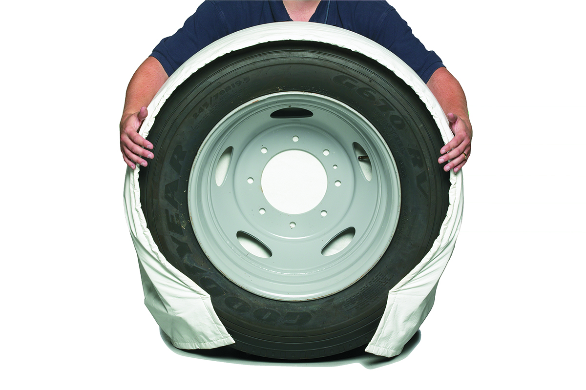 Sold in pairs, TireSavers are available in Black or White - Just measure across the tire from tread to tread for diameter size, there are seven sizes to fit from small trailer tires all the way up to 42" Class "A" motorhomes.