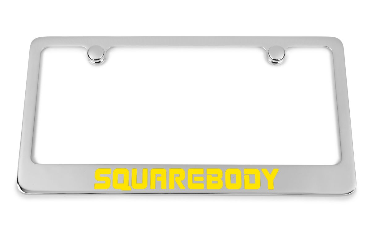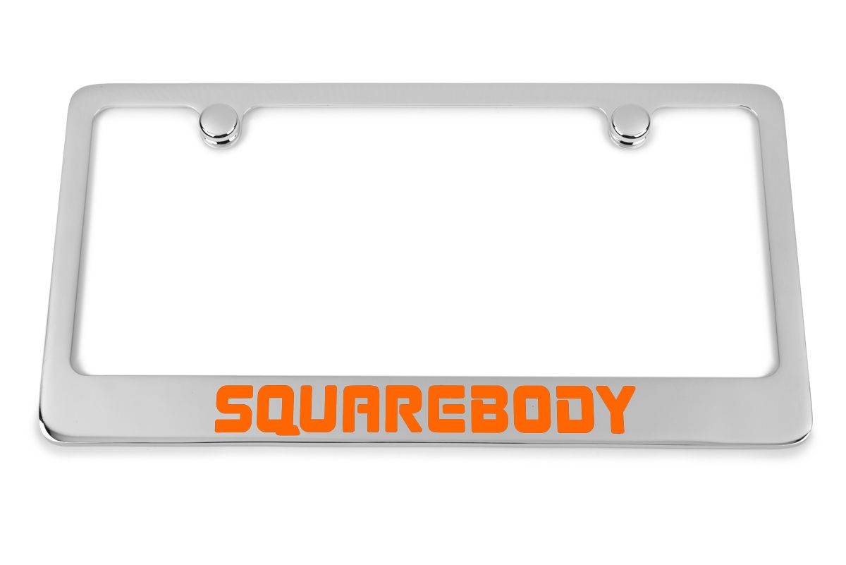 Hand-Filled with UV stable epoxy paint, our frames boast vibrant colors that resist fading. The logos are hand filled with your choice of color in Red, Black, Blue, Orange, Clear exposing Silver Zink, or Brass to name a few. The result is a stunning, long-lasting finish that enhances the aesthetics of your Squarebody Chevrolet Truck.