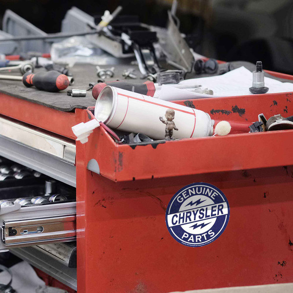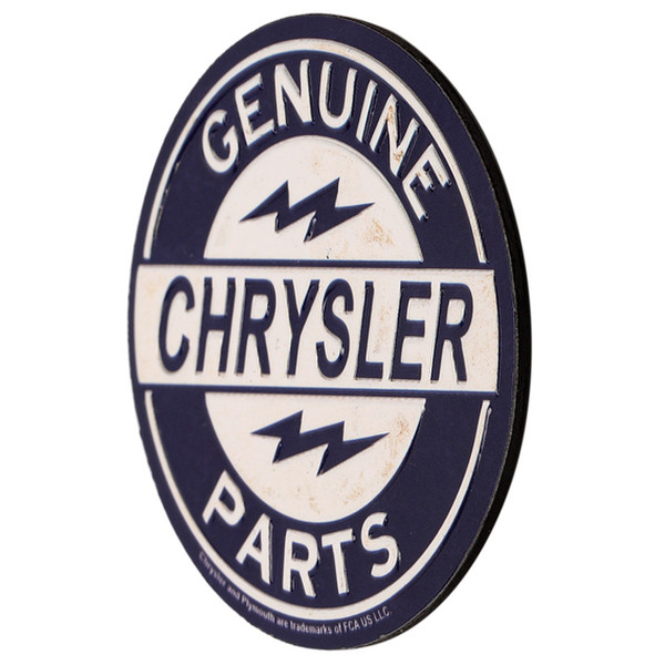 Chrysler Genuine Parts embossed metal magnet. Add personality to your garage, kitchen, or office when you place this classic Chrysler magnet on your toolbox, refrigerator, filing cabinet, or any other magnetic surface.