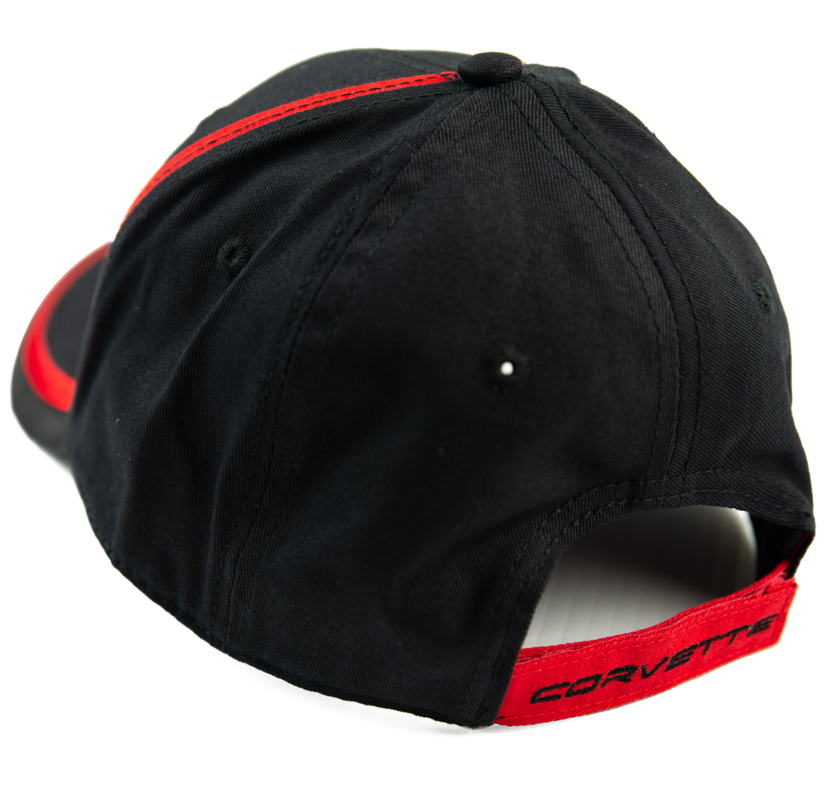 High-End Quality Official GM Licensed Product ® - Corvette C8 Flag and Corvette Logo front and Corvette back. Nice 100% Cotton twill black hat featuring red trim and closer with new 2020 Corvette Corvette and Flag embroidered logos. Features pre-curved outer Carbon Fiber Bill with C8 Corvette flags emblem on front, adjustable Velcro closure strap with the new C8 Corvette logo Embroidery.