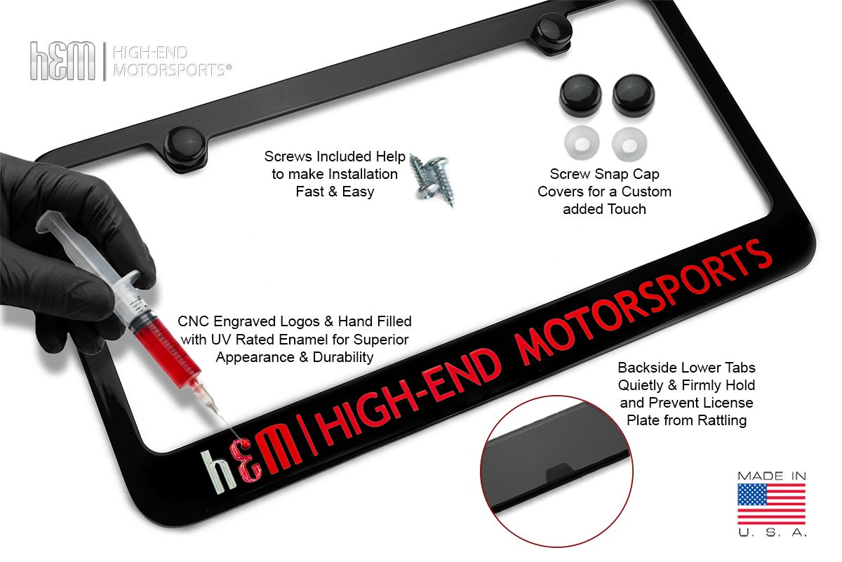 Hand-Filled with UV stable epoxy Paint , our frames boast vibrant colors that resist fading. The logos are hand filled with your choice of color in Red, Black, Blue, Orange, Clear exposing Silver Zamak, Brass, or Yellow to name a few. The result is a stunning, long-lasting finish that enhances the aesthetics of your Chevrolet Corvette Stingray.