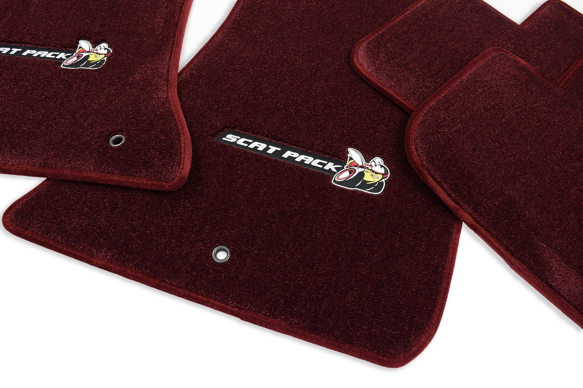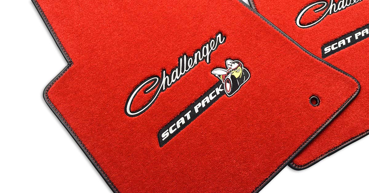 Custom fit and tailored to your exact year, make and model. Ultimat™ mats feature Premium 32oz 2ply, extra dense nylon carpet over Twice the Weight of most factory mats. Stylish Vinyl or Velour Binding that won't unravel to give you the look, feel, and outstanding performance that your Challenger Scat Pack deserves. The logos are stitched with your choice of color in Red, Black, Beige, Light Blue,Blue, Dark Blue, Charcoal, Copper-Sinamon, Burgundy-Octane Red, Gold, Green, Bright Green, SubLime Green, Pink, Purple, Orange, Silver, and Yellow to name a few. With highly detailed Mopar Licensed logos Embroidered through the Mat and custom color trim options around the mat allows you to personalize the look you want for your Challenger R/T ScatPack Trunk Mat.
