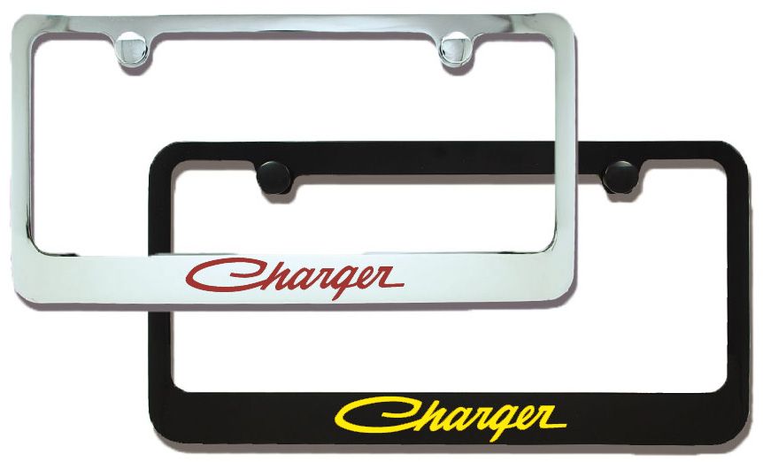 Hand-Filled with UV stable epoxy Paint , our frames boast vibrant colors that resist fading. The logos are hand filled with your choice of color in Red, Black, Blue, Orange, Clear exposing Silver Zamak, Brass, or Yellow to name a few. The result is a stunning, long-lasting finish that enhances the aesthetics of your Dodge Charger.