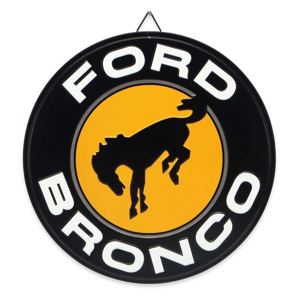 You're either a Ford Bronco lover, or you're simply missing out. Prove your loyalty to the beloved SUV with this bold black, yellow, and white wall decor. Ford officially licensed product Add charm and personality to your garage, shop, or man cave with this unique sign. Size: 12" W X 12" H X 0.125" D