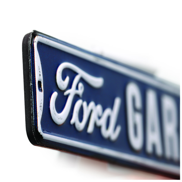Ford street sign metal embossed magnet. Hit the road with this street sign-inspired magnet! With a classic Ford logo and recognizable color palette, this magnet is sure to catch your eye.