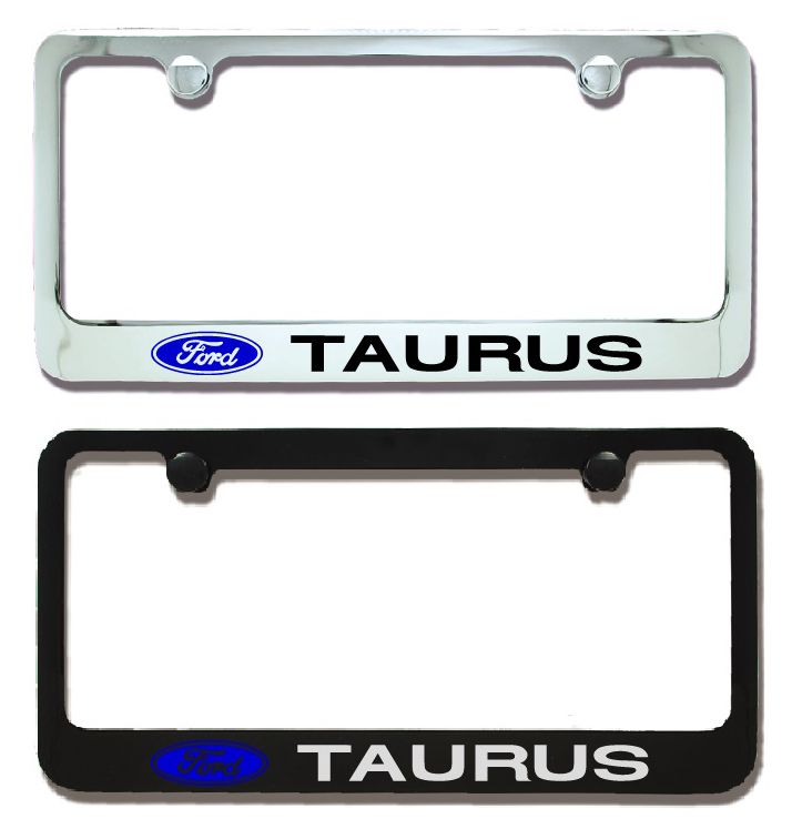 Hand-painted with UV stable epoxy paint, our frames boast vibrant colors that resist fading. The logos are hand filled with your choice of color in Red, Black, Blue, Orange, Yellow, or Clear exposing Silver Zamak, Brass. The result is a stunning, long-lasting finish that enhances the aesthetics of your Ford Taurus.