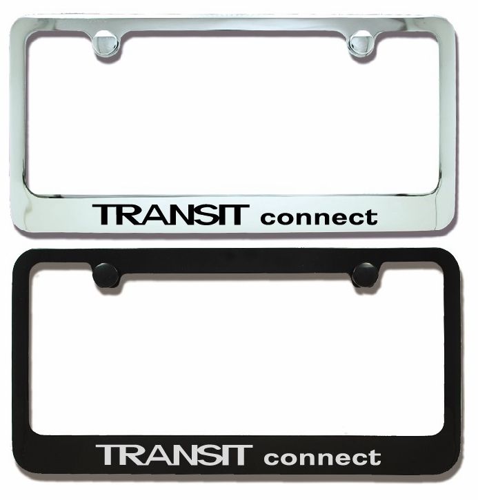 Hand-painted with UV stable epoxy paint, our frames boast vibrant colors that resist fading. The logos are hand filled with your choice of color in Red, Black, Blue, Orange, Yellow, or Clear exposing Silver Zamak, Brass. The result is a stunning, long-lasting finish that enhances the aesthetics of your Ford Transit Connect.