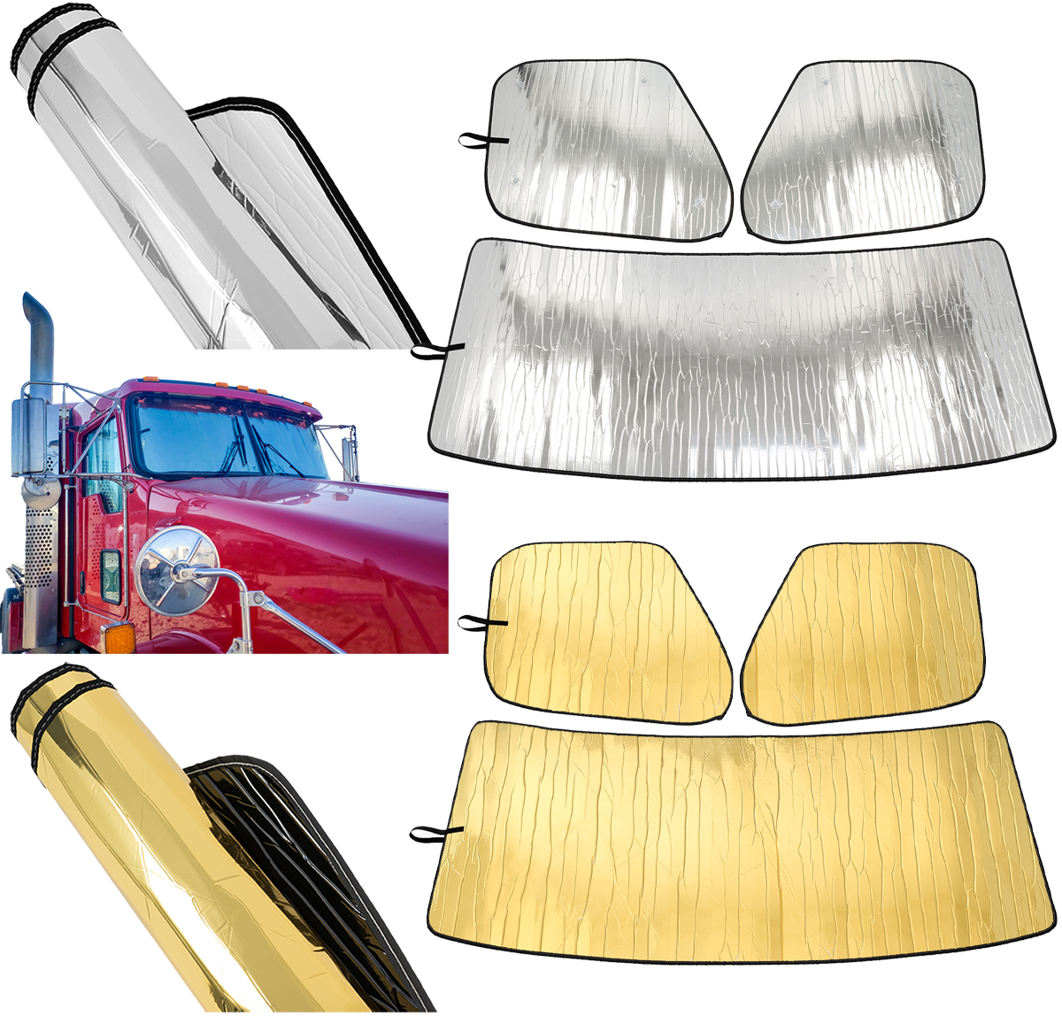 Just think of it, your Freightliner eCascadia was parked in the Sun and the interior is cool to the touch and the temperature is as much as 40 degrees cooler. This is done by the high-tech, incredibly reflective closed cell foam. Since every corner is covered, it gives you maximum protection for your interior and looks great from the outside at the same time. Lightweight, just roll it up when not in use. Protect your investment; this is what your Freightliner eCascadia deserves. Custom made, Fits like a Glove!