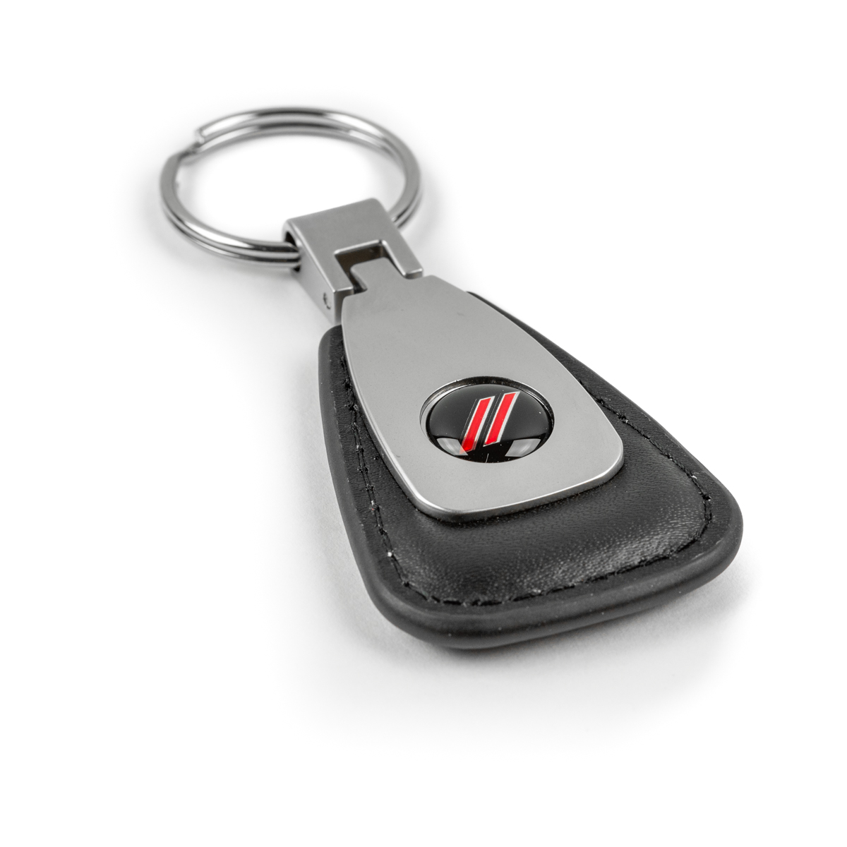 This key fob features the Classic look of a vintage leather fob with todays lightweight brushed aluminum to give it a modern twist. Features a highly detailed Hash Racing Stripes raised embossed domed logo on the front.