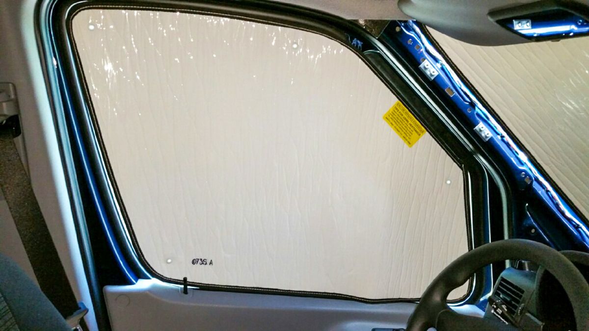 This high-quality, USA-made windshield sunshade is custom-designed to fit all RVs built on the RAM ProMaster 3500 chassis, including the Jayco Swift Class B motorhome. Engineered for precision, it fits the windshield perfectly, offering maximum interior protection and temperature control.