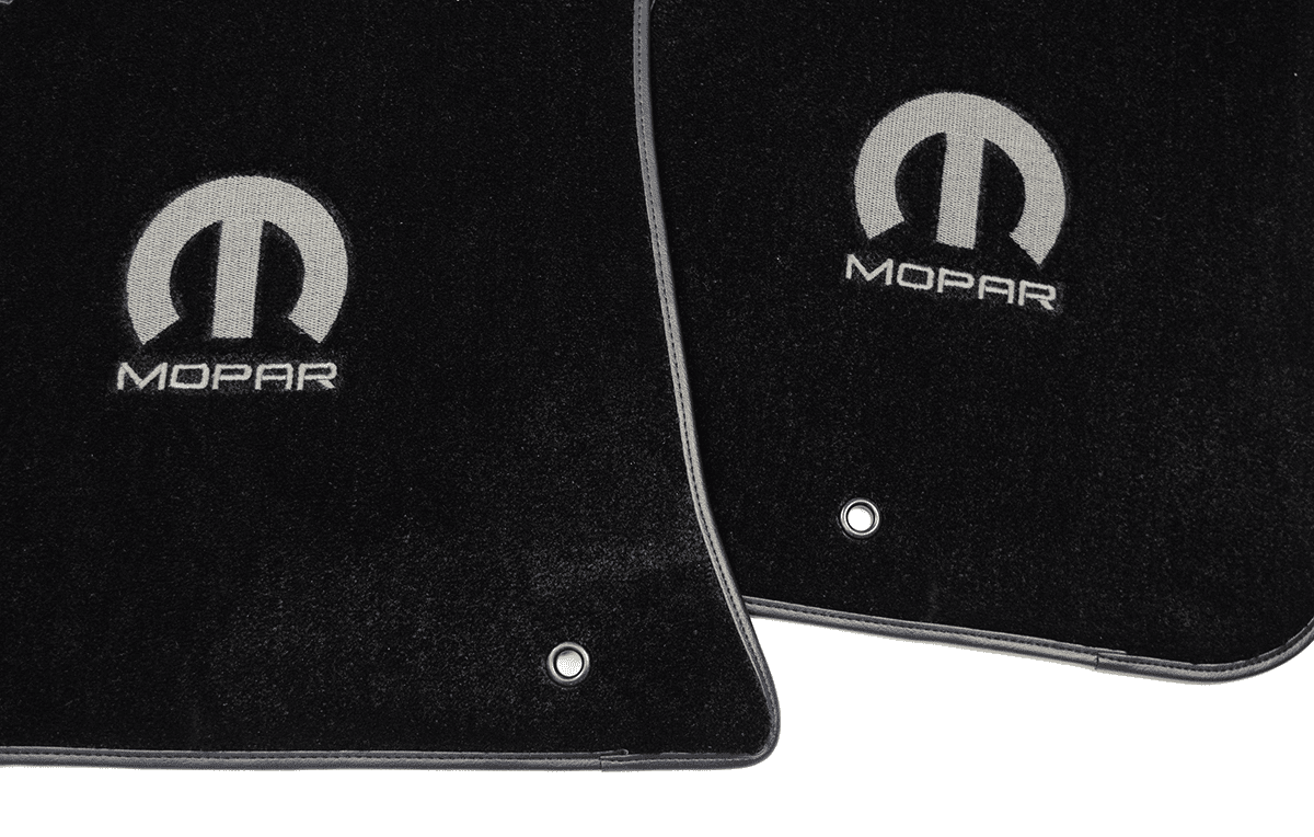 Custom fit and tailored to your exact year, make and model utilizing factory compatible anchors. Ultimat™ mats feature Premium 32oz 2ply, extra dense nylon carpet over twice the weight of most factory mats. Stylish Vinyl or Velour Binding that won't unravel to give you the look, feel, and outstanding performance that your Challenger deserves. The logos are stitched with your choice of color in Red, Black, Beige, Light Blue,Blue, Dark Blue, Charcoal, Copper-Sinamon, Burgundy-Octane Red, Gold, Green, Bright Green, SubLime Green, Pink, Purple, Orange, Silver, and Yellow to name a few. Proudly Display the Omega “M” logo. Since 1964 it has been the backdrop of Chrysler's attempts to take over the Race Car Market. With highly detailed Mopar Licensed logos Embroidered through the Mat and custom color trim options around the mat allows you to personalize the look you want for your Classic Mopar Logo Challenger Mats.