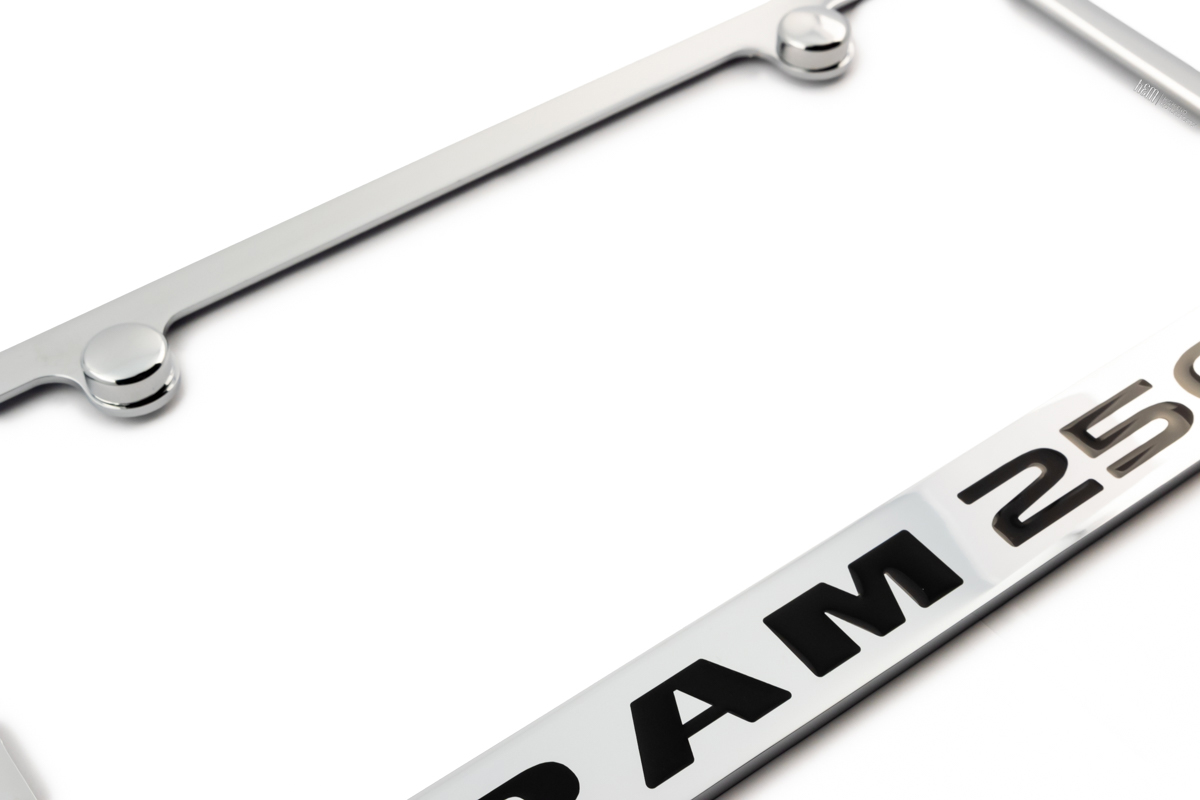 RAM Truck License Plate Frames are equipped with secure tabs and matching screw covers. Our frames go beyond aesthetics, say goodbye to vibrations and harmonics as our frames ensure a stable and rattle-free fit, making them not just visually appealing but also practical.