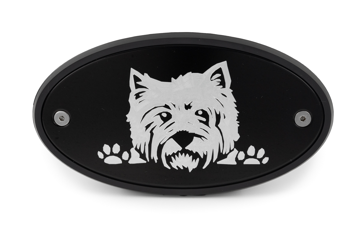 Go ahead, proudly install this "Westie Dog" Receiver Hitch Plug Cover that is made from a tough ABS plastic so it will not vibrate (Setting off your engine knock sensor, causing loss in power). Receiver can be installed with or with-out your locking pin. Features a High Quality Satin Black, Blue or Red Finish Aluminum, Hand Engraved Logo, Epoxy filled Resin (Not Paint) in your choice of color then baked overnight to give you years of service that a vehicle should have.