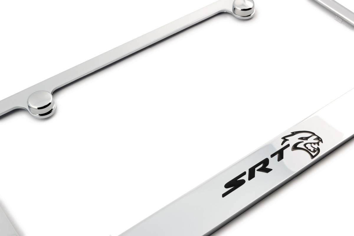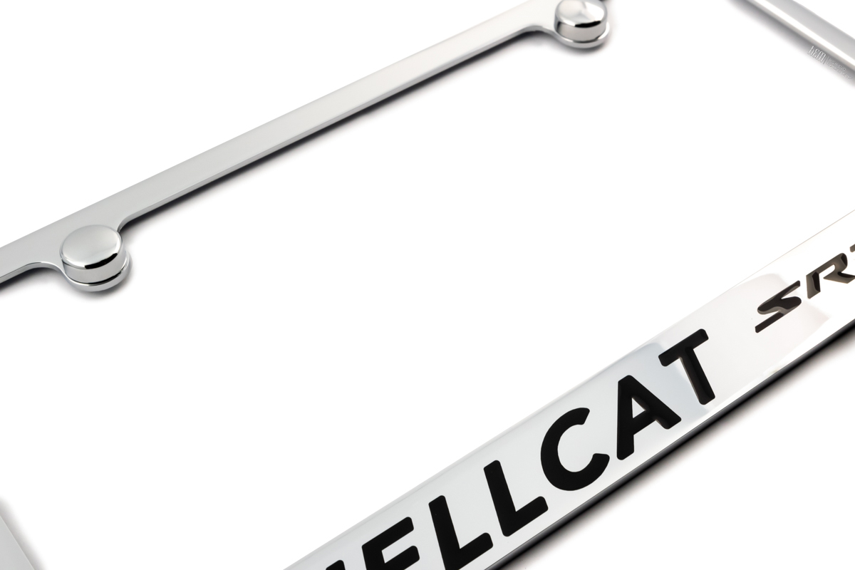 Hand-Filled with UV stable epoxy Paint , our frames boast vibrant colors that resist fading. The logos are hand filled with your choice of color in Black, Red or Clear exposing Silver Zamak to name a few. The result is a stunning, long-lasting finish that enhances the aesthetics of your Dodge Hellcat.