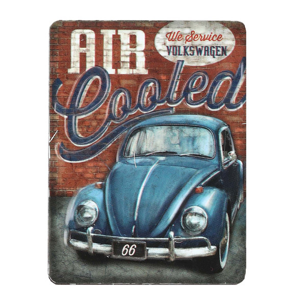 Volkswagen Air Cooled Bug metal magnet. Stick this magnet on your toolbox, filing cabinet, or refrigerator for instant personality! This officially licensed embossed metal magnet measures 2.25" W X 3" H X 0.125" D.